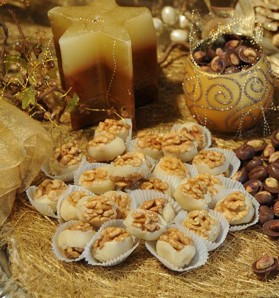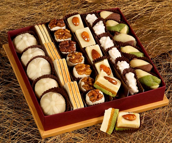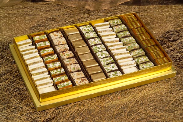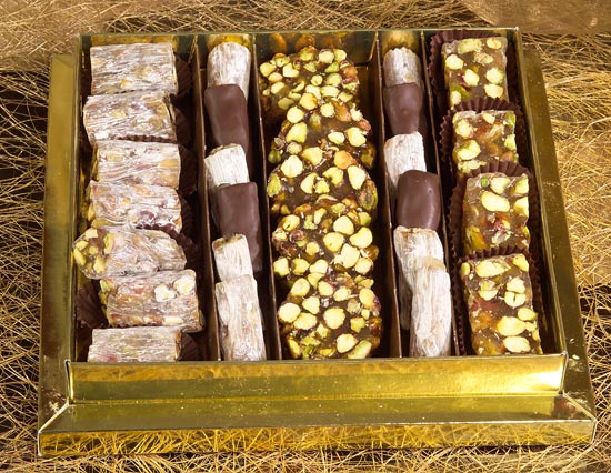 انواع مميزة من الضيافة التي تشتهر بها مدينة حلب وتنفرد بها شوكولاهدى من الراحة المصنوعة بالفستق الى الغريبة المحشية بالشوكولا او الهريسة بالاضافة الى شراب اللوز المصنوع من اللوز الخالص مع الحليب والذي يقدم في اجمل المناسبات.